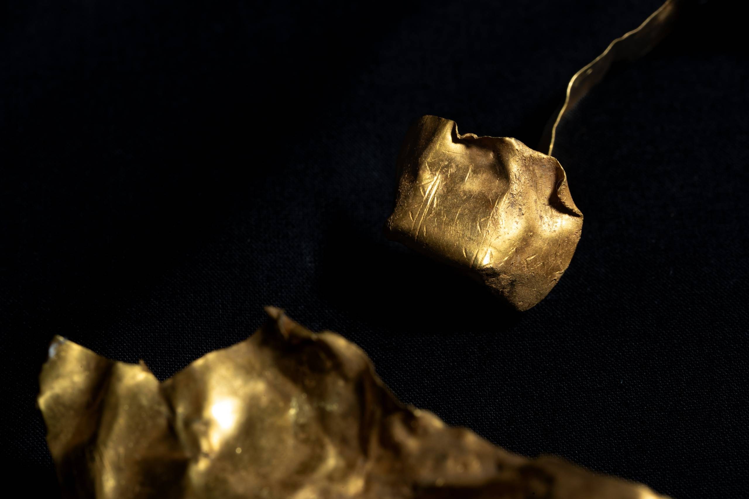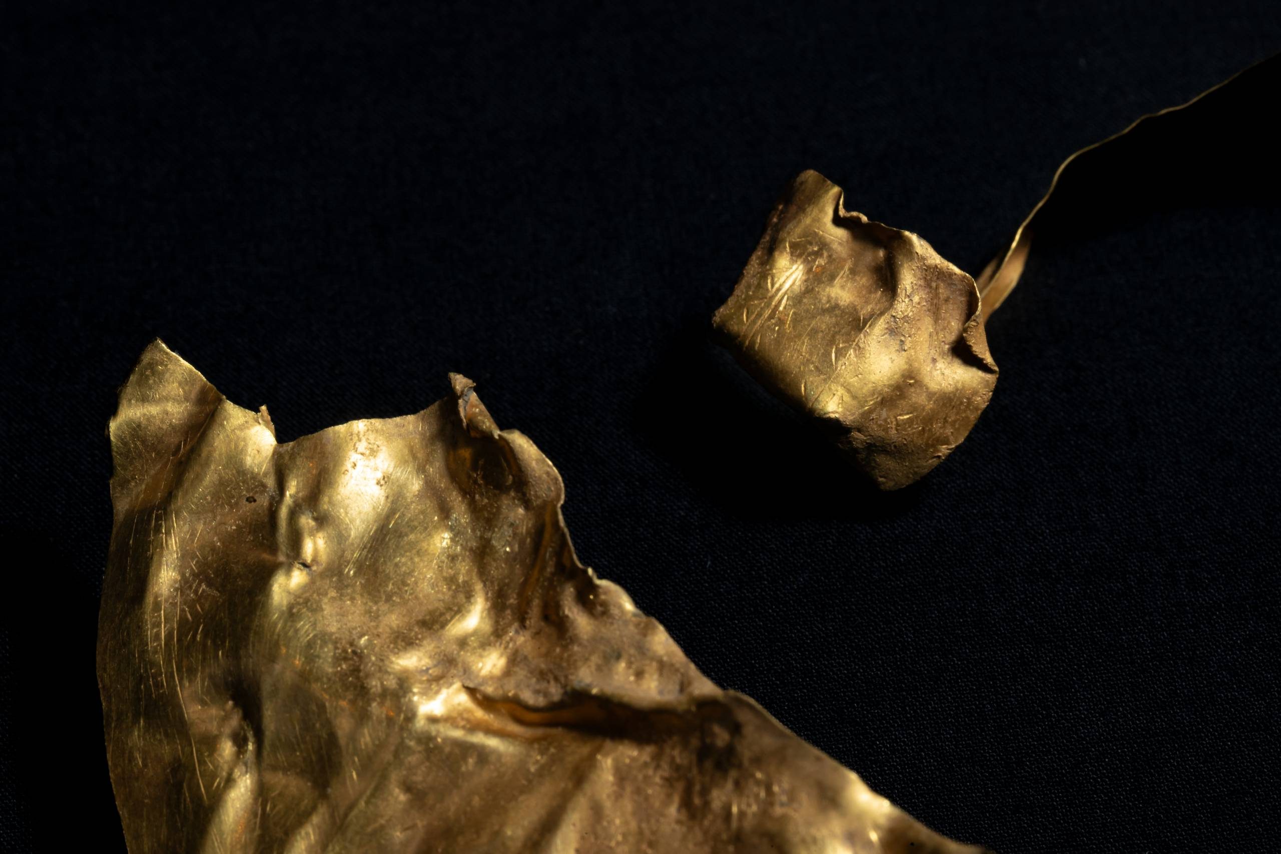 The Craven lunula was found near Grassington in 2023 in a stream. It was rolled up when first found, hence its wrinkled appearance. Several of the lunulae in the National Museum of Ireland’s collection were also rolled or suspected to have been rolled.