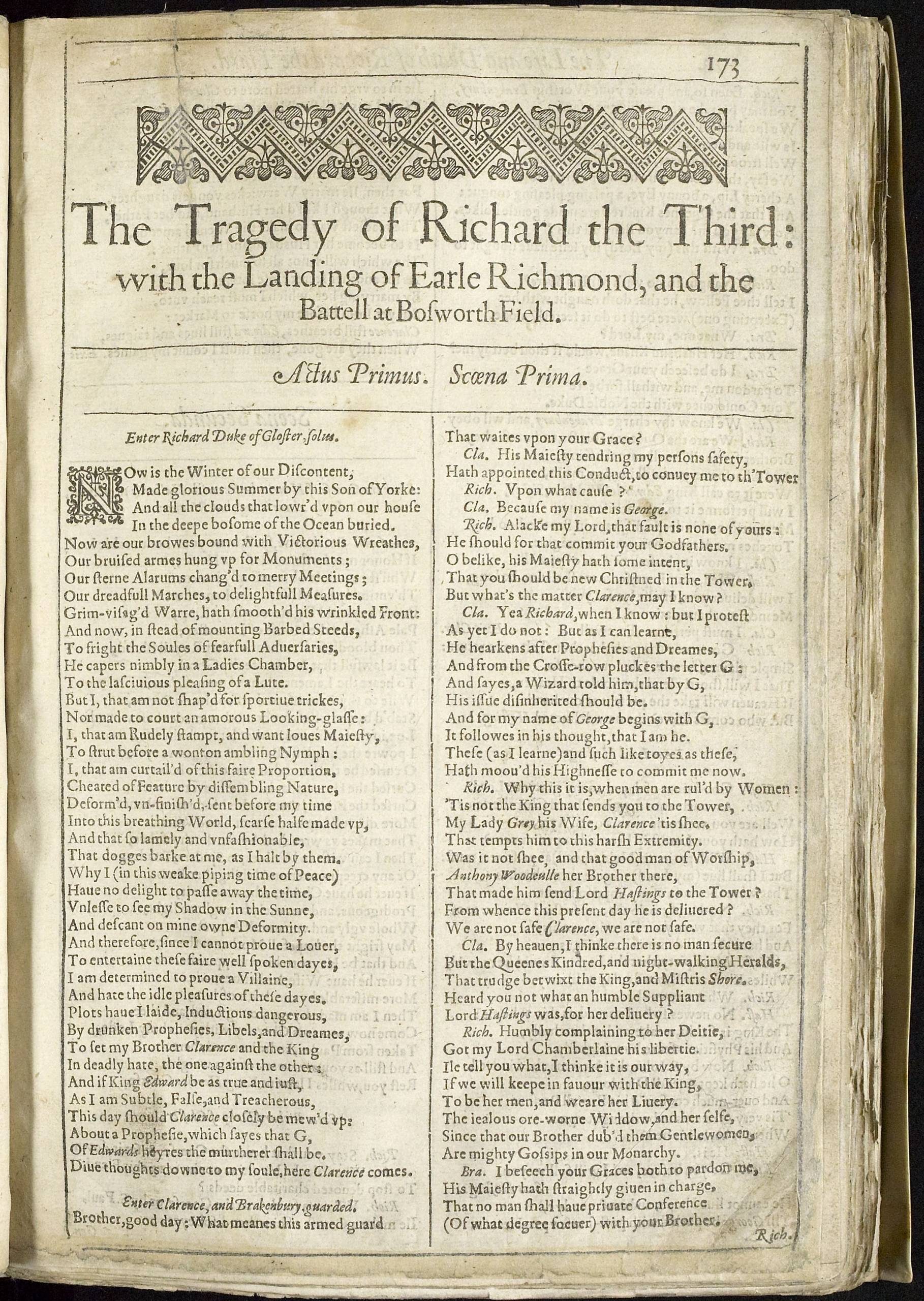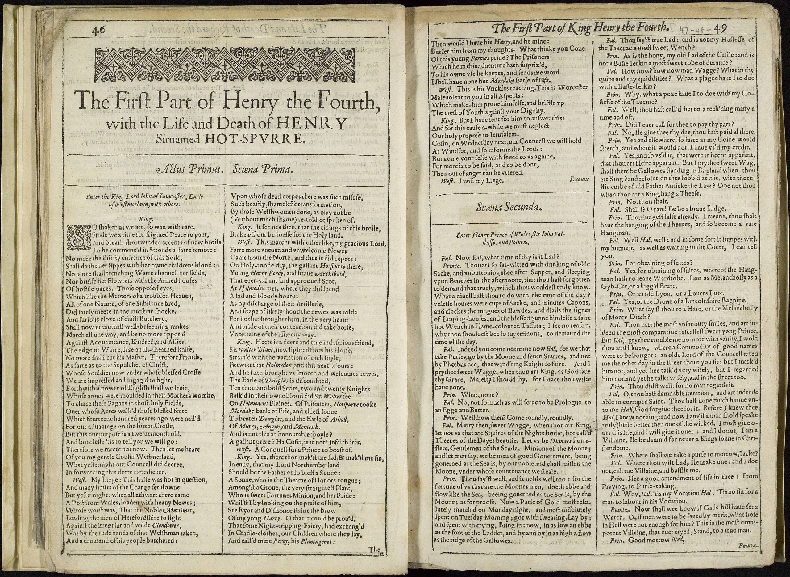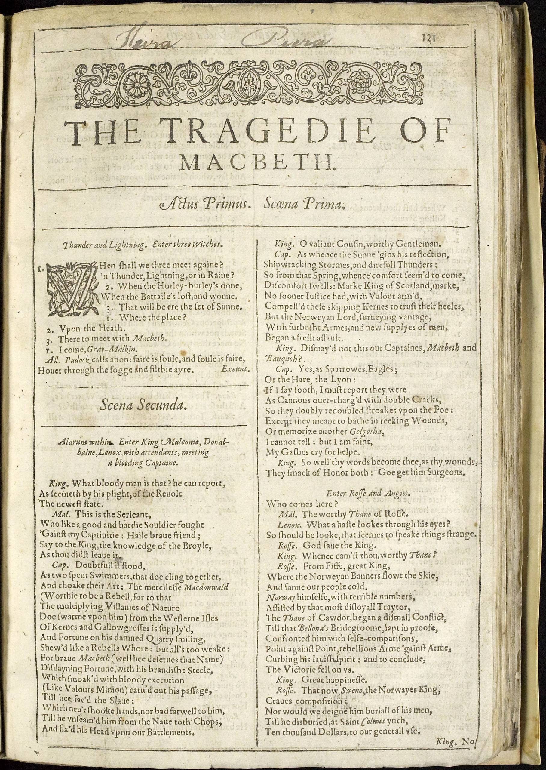 This First Folio lacks its introductory pages and all of the comedies. A complete copy of the First Folio contains thirty-six plays, but many surviving First Folios have missing pages.