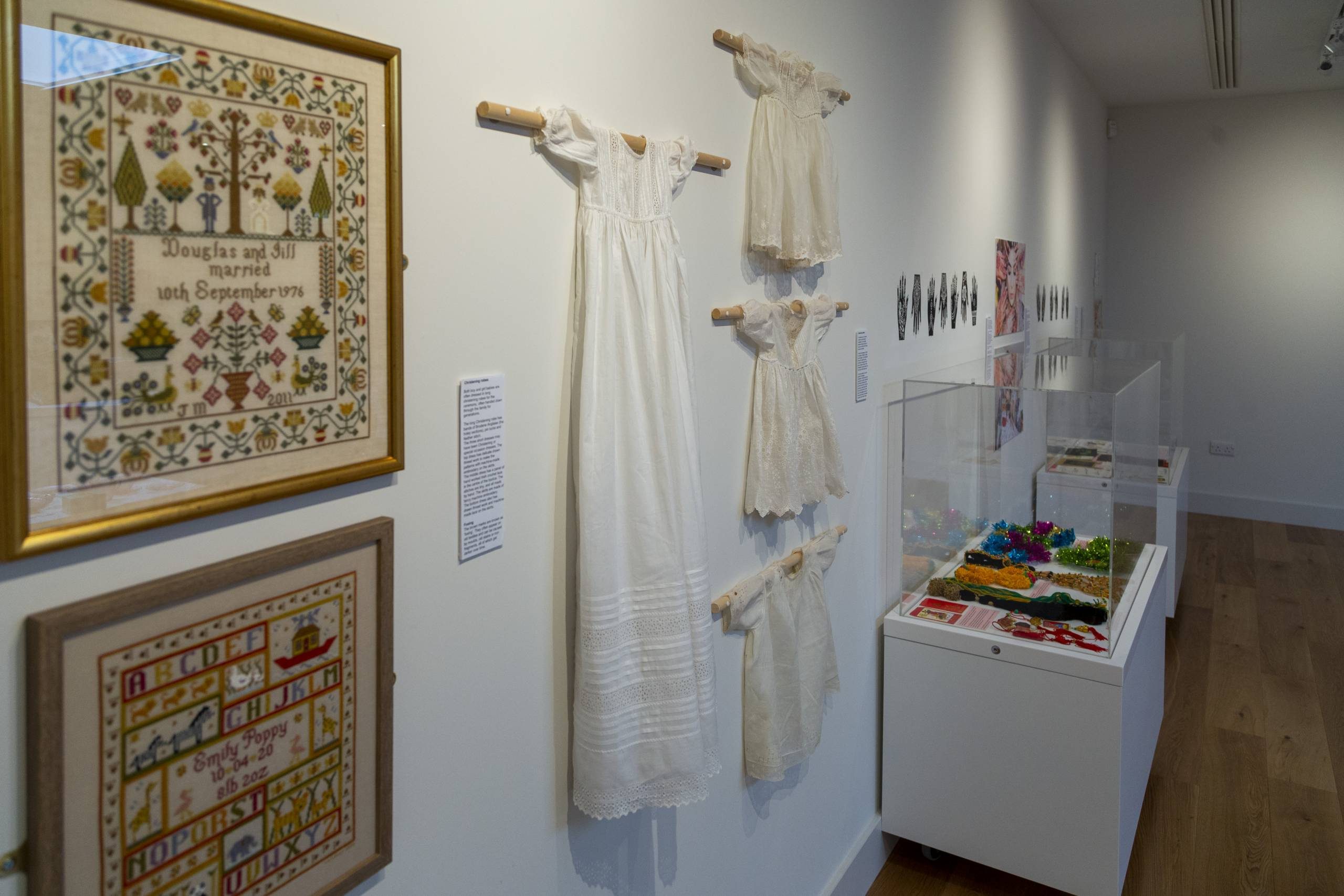 For this exhibition we received lots of creative input from individuals who worked with Pioneer Projects; through Yesmien Bagh Ali talking to and working with members from the Pakistani, Chinese, Turkish, Syrian, Indian, Swedish and Polish communities in Skipton; and contributions from the Skipton Stitchers embroidery group.